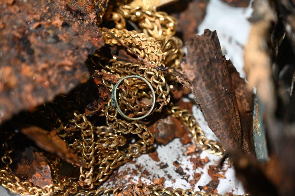 Slėptuvėje rastos Lietuvos ir Lenkijos valdovų Aleksandro, Elžbietos ir Barboros įkapėms skirtos insignijos: Lietuvos didžiojo kunigaikščio ir Lenkijos karaliaus Aleksandro karūna, Elžbietos Habsburgaitės karūna, grandinė, medalionas, žiedas ir karsto lentelė, Barboros Radvilaitės karūna, skeptras, valdžios obuolys, trys žiedai, grandinė ir dvi karsto lentelės.